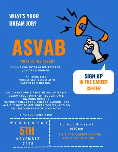 FHS offers the ASVAB in the Fall and Spring. Talk to your counselor to register for the next ASVAB offered on campus.